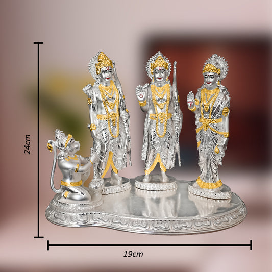 DIVINITI 999 Silver Plated Lord Ram Darbar Idol | Exquisite Divine Statue For Home Decor, Office Table Top, Pooja Room & Gift (19X24CM)
