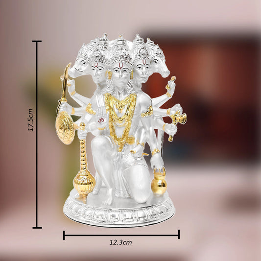 DIVINITI 999 Silver Plated Lord Panchmukhi Hanuman Idol | Exquisite Divine Statue for Home Decor, Office Table Top, Pooja Room & Gift (17.5X12.3CM)