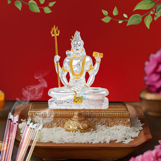 DIVINITI 999 Silver Plated Four Hand Lord Shiva Idols Statue Power, Blessings for Home & Office Decor, Tabletop, Puja Room Gift (16x12 CM)