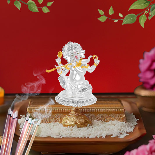 Diviniti 999 Silver Plated Lord Krishna Playing Flute Idol Statue Elegant Spiritual for Home & Office Pooja Room Gift (16x9 CM)