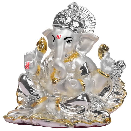 Diviniti 999 Silver-Plated Lord Ganesha Idol in Seep | Home, Office & Temple Décor | Prayer & Gift