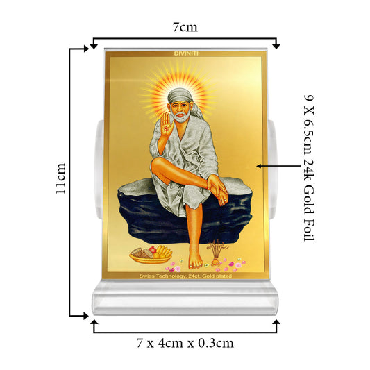 Sai Baba of Shirdi | Saint of Faith & Compassion Car Dashboard Frame in 24K Gold Plated Foil