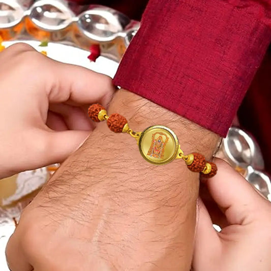 Tirupati Balaji Rudraksha Bracelet with 22MM 24K Gold Plated Foil Divine Raksha Bandhan Gift