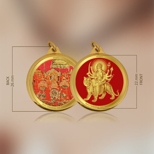 DIVINITI 24K Gold Plated Durga & Mata Ka Darbar 18MM Double Sided Pendant For Men, Women & Kids