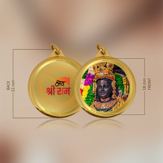 Diviniti 24K Gold Plated Lord Ram Lalla & Jai Shri Ram 18MM Double Sided Pendant For Men, Women & Kids