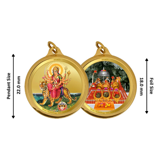 Diviniti 24K Gold Plated Durga Ji & Mata Ka Darbar 22MM Double Sided Pendant For Men, Women & Kids