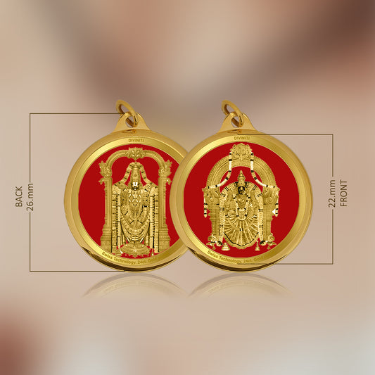 Diviniti 24K Gold Plated Padmavathi & Tirupati Balaji 22MM Double Sided Pendant For Men, Women & Kids