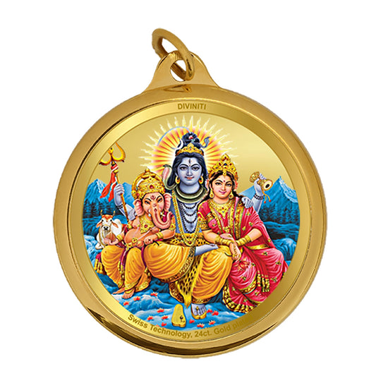 Diviniti 24K Gold Plated Shiv Parivar & Om 18MM Double Sided Pendant For Men, Women & Kids
