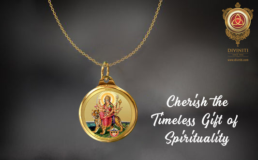 Diviniti 24K Gold Plated Goddess Durga & Mata Ka Darbar 28MM Double Sided Pendant For Men, Women & Kids