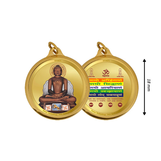 Diviniti 24K Double sided Gold Plated Pendant Lord Mahavir & Namokar Mantra|18 MM Flip Coin