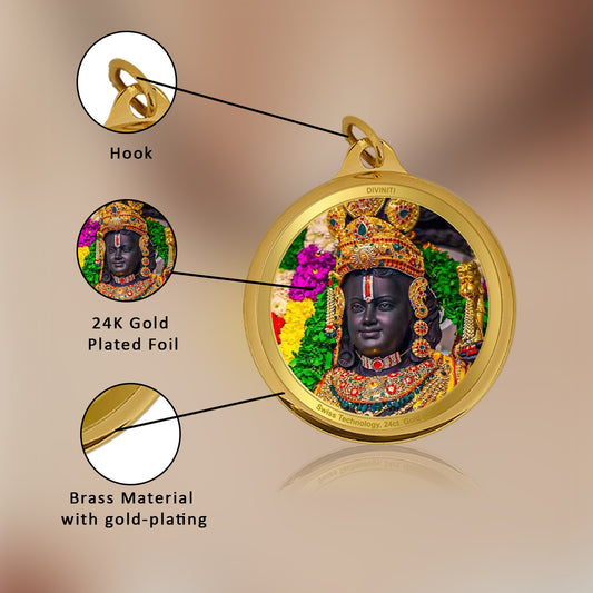Diviniti 24K Gold Plated Ram Lalla & Jai Shri Ram 28MM Double Sided Pendant For Men, Women & Kids