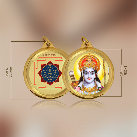 Diviniti 24K Gold Plated Lord Ram Ji & Yantra 18MM Double Sided Pendant For Men, Women & Kids