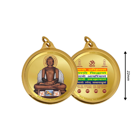 Diviniti 24K Double sided Gold Plated Pendant Lord Mahavir & Namokar Mantra|22 MM Flip Coin