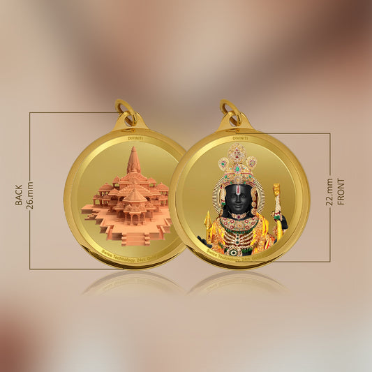 Diviniti 24K Gold Plated Lord Ram Lalla & Ram Mandir 22MM Double Sided Pendant For Men, Women & Kids