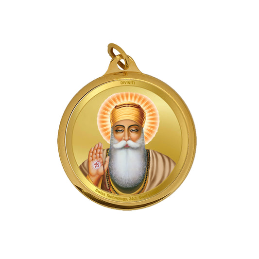Diviniti 24K Gold Plated Guru Nanak Dev Ji & Ik Onkar 22MM Double Sided Pendant For Men, Women & Kids