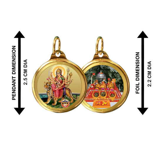Diviniti 24K Gold Plated Durga Ji & Mata Ka Darbar 22MM Double Sided Pendant For Men, Women & Kids