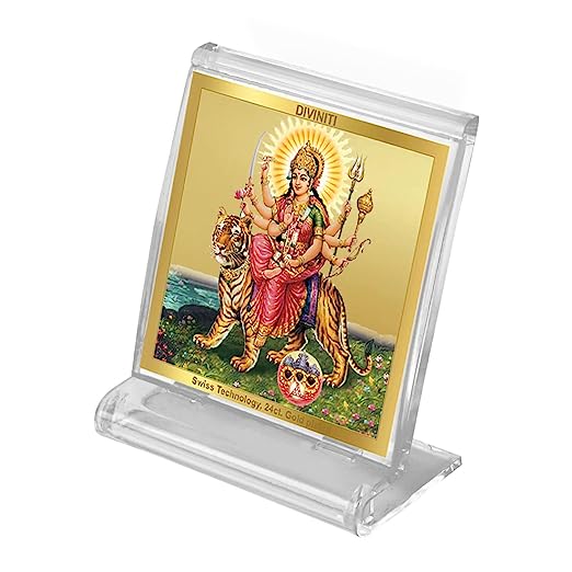 Diviniti 24K Gold Plated Durga Maa Frame For Car Dashboard, Home Decor, Table, Puja (5.5 x 6.5 CM)