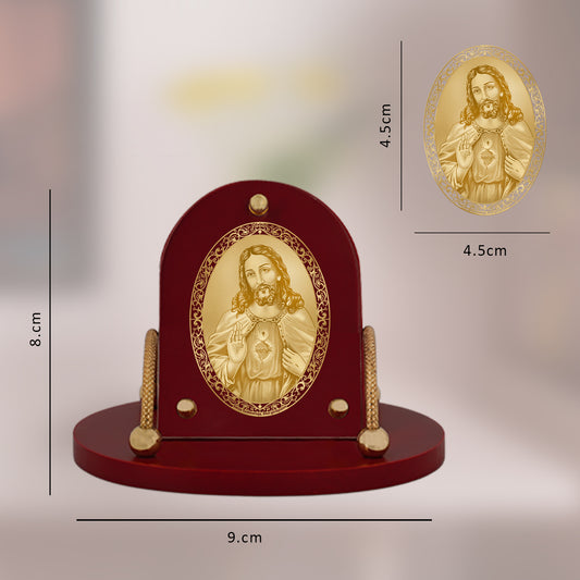 Diviniti 24K Gold Plated Foil Jesus Frame for Car Dashboard, Home Decor, Table & Office (8 CM x 9 CM)