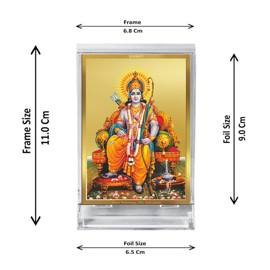 Diviniti 24K Gold Plated Foil God Ram Frame For Car Dashboard, Home Decor, Table, Puja (11 x 6.8 CM)