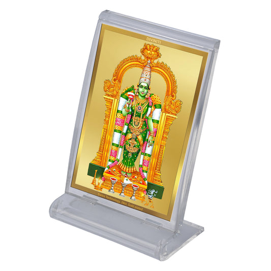 Diviniti 24K Gold Plated Meenakshi Aman Frame for Car Dashboard, Home Decor, Table & Office (8 CM x 9 CM)