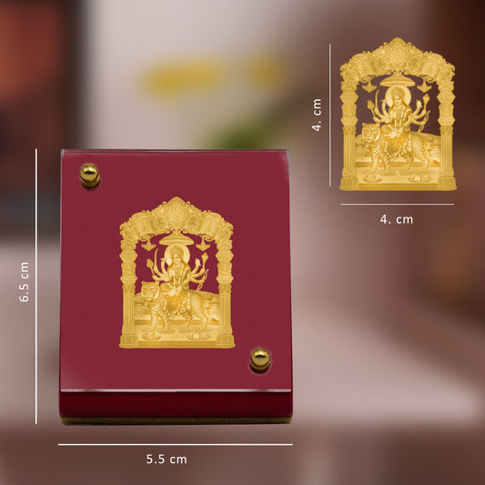 Diviniti 24K Gold Plated Foil Durga Mata Frame for Car Dashboard, Home Decor, Table & Office (5.5 CM x 6.5 CM)