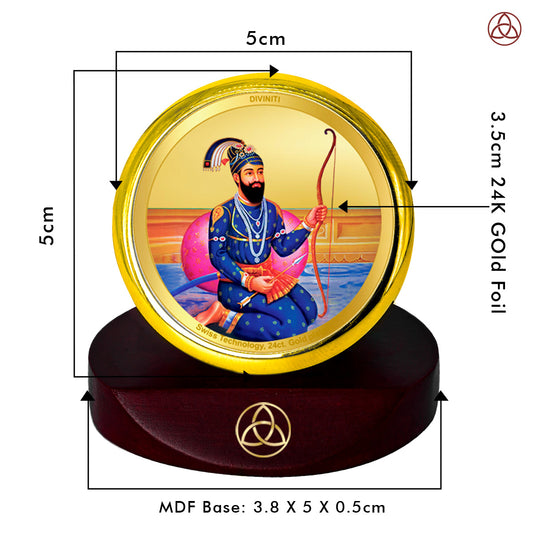 Diviniti 24K Gold Plated Foil Guru Gobind Singh Ji Frame For Car Dashboard, Home Decor, Table Tops (5.5 x 6.5 CM)