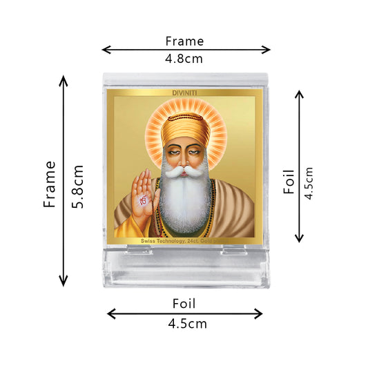 Diviniti 24K Gold Plated Foil Guru Nanak Dev Ji Acrylic Frame for Car Dashboard, Home Decor, Tabletop, Puja Room, Festival Gift ACF3A (5.8x4.8 CM)