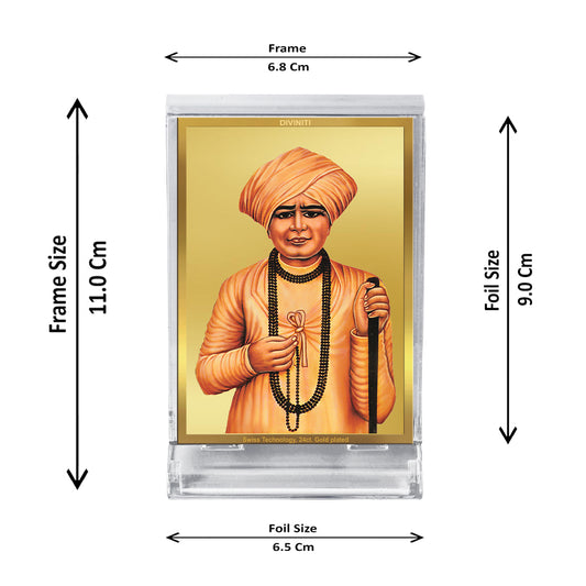 Diviniti 24K Gold Plated Foil Jalaram Bapa Frame For Car Dashboard, Home Decor, Table, Gift (11 x 6.8 CM)