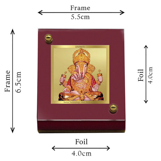 DIVINITI 24K Gold Plated Foil Dagru Ganesha Frame For Car Dashboard & Home Decor Showpiece (MDF 1B)(5.5 x 6.5 CM)