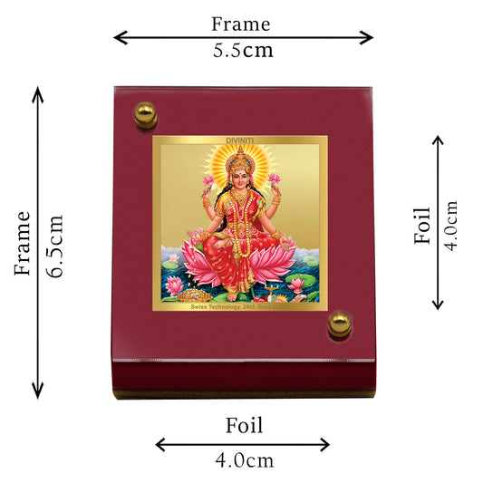 Diviniti 24K Gold Plated Foil Laxmi Ji Frame For Car Dashboard, Home Decor, Puja, Festival Gift (5.5 x 6.5 CM)