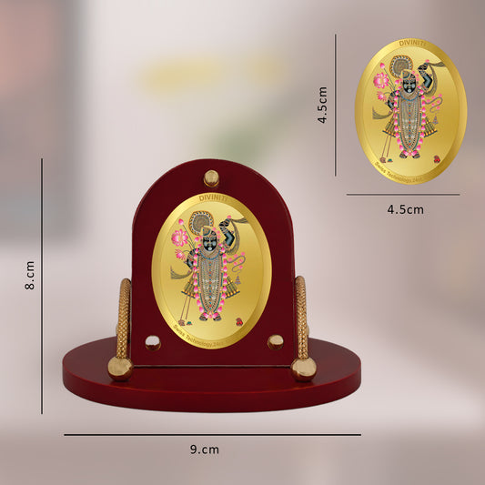 Diviniti 24K Gold Plated Foil Shrinathji Frame for Car Dashboard, Home Decor, Table & Office (8 CM x 9 CM)