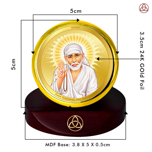 Diviniti 24K Gold Plated Foil Sai Baba Photo Frame for Car Dashboard, Home Decor, Table Top, Puja Room Worship and Festival Gift MCF1CGOLD (5.5x5 CM)