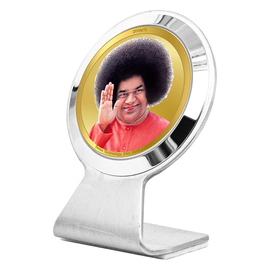 Diviniti 24K Gold Plated Foil Sathya Sai Baba Frame for Car Dashboard, Home Decor, Worship, Tabletop & Festival Gift MCF1CR (6.2x4.5 CM)