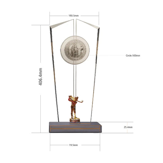 Crystal Cube Golf Trophy Elegant Golden Ball Award for Players, Souvenirs, and Recognition Events