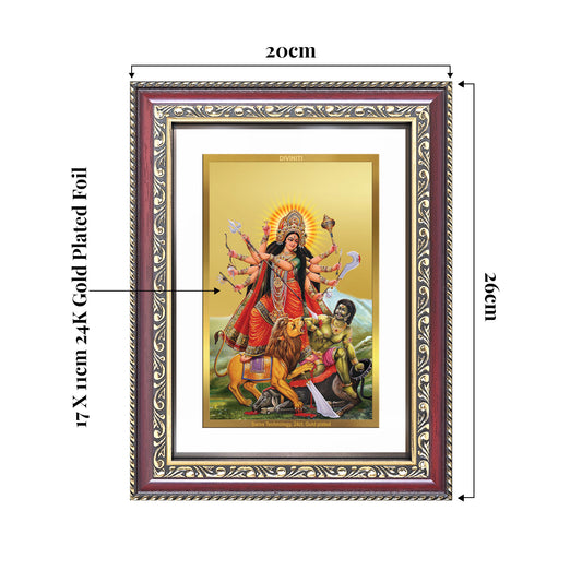 Durga-Mahishasura Mardini | Goddess Durga Slaying Mahishasura Wall and Tabletop Photo Frame in 24K Gold Plated Foil