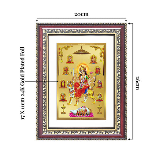 Durga Nav Durga | Goddess Durga in Her Nine Divine Wall and Tabletop Photo Frame in 24K Gold Plated Foil