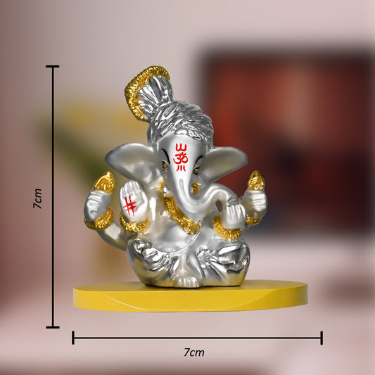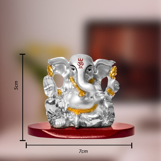 DIVINITI 999 Silver Plated Pagdi Lord Ganesha Statue Idol For Easy To Carry, Car Dashboard, Home Decor, Table Top, Puja Room, Gift (7x7 CM)