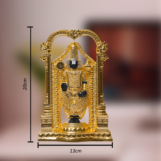Diviniti Tirupati Balaji Idol for Home Decor| 24K Gold Plated Sculpture of Tirupati Balaji for Home, Office, Temple and Table Decoration| Religious Idol For Pooja, Gift 20X13CM)