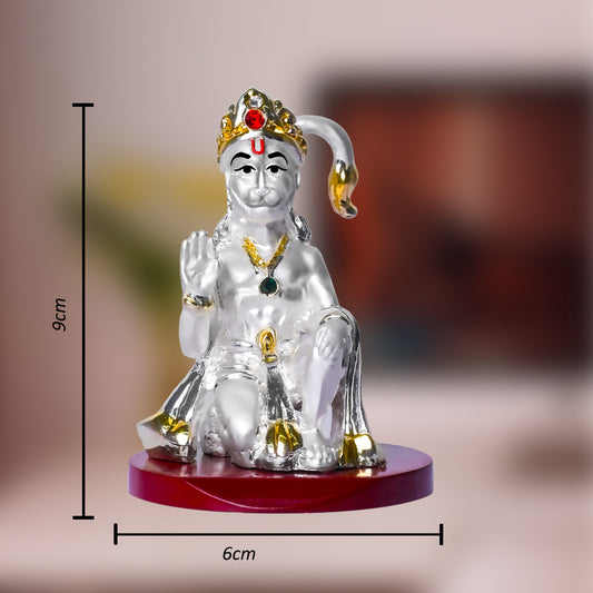 DIVINITI 999 Silver Plated Lord Hanuman Elegant Statue Idol For Car Dashboard, Home Decor, Puja Room, Luxury Gift (9x6 CM)