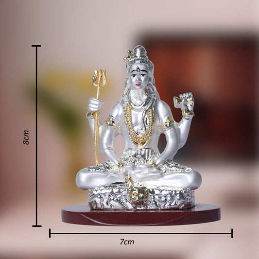DIVINITI 999 Silver Plated Lord Shiva Statue Idol For Home Decor, Car Dashboard, Table Top, Luxury Gift, Puja Room (8x7 CM)