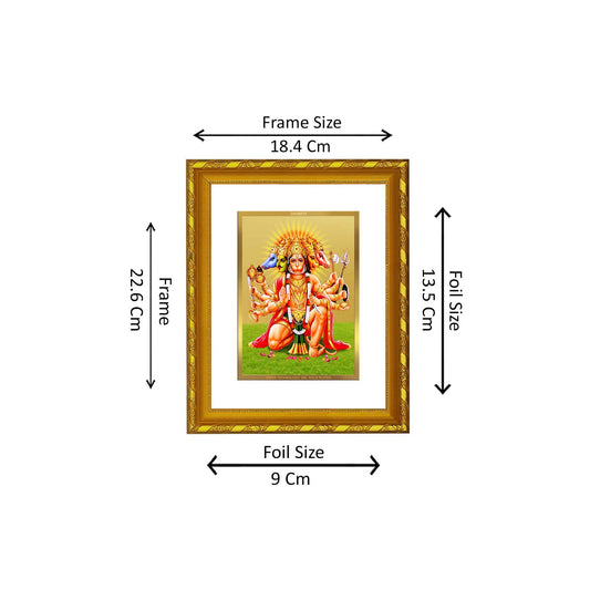 DIVINITI 24K Gold Plated Foil Panchmukhi Hanuman Photo Frame for Home Decor, Puja Room, Table Top, Wall Hanging, Workshop, Luxurious Gift|DG103 Size 2 (22.6x18.4 CM)
