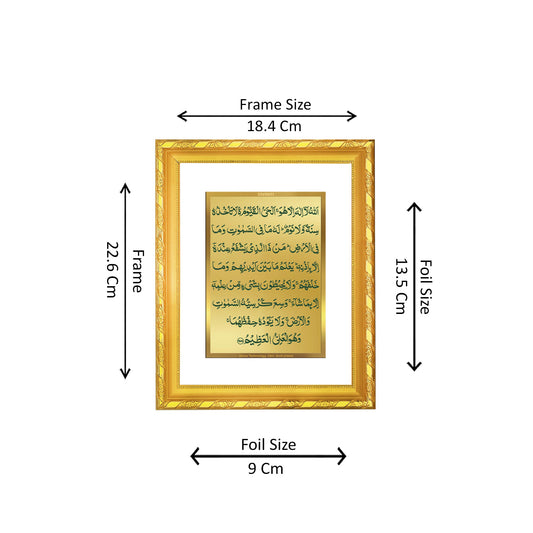 DIVINITI 24K Gold Plated Foil Ayatul Kursi Traditional Photo Frame Idol for Home Wall Decor, Workshop, Table Top, Premium Gift|DG103 Size 2 (22.6x18.4 CM)