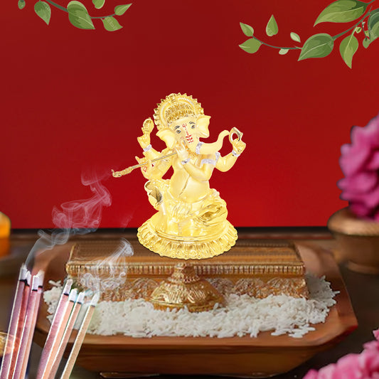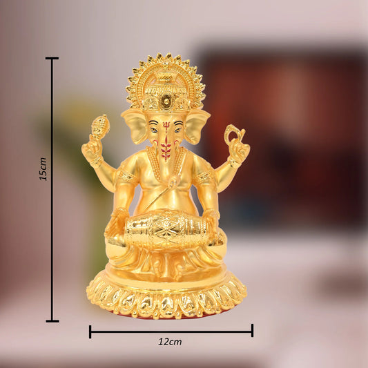 Diviniti 24K Gold Plated Lord Ganesha Idol Statue Elegant Spiritual Décor for Home & Office Pooja Room Accent Gift (15.5x14 CM)