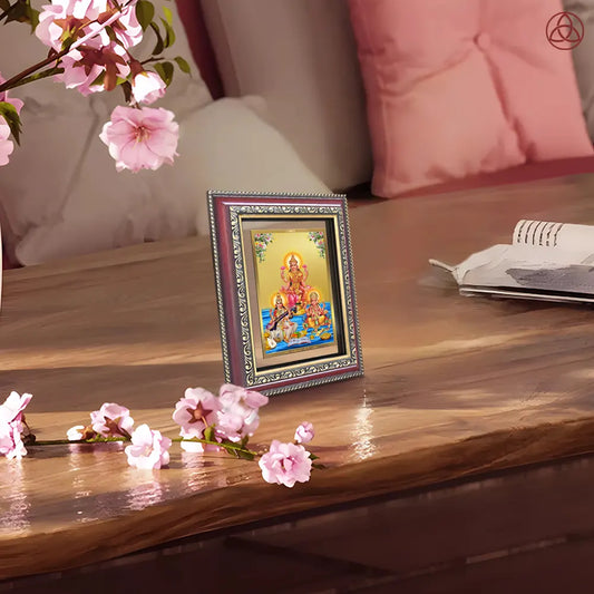 Goddess Lakshmi Saraswati & Lord Ganesha | Divine Trio Wall & Tabletop Photo Frame in 24K Gold Plated Foil