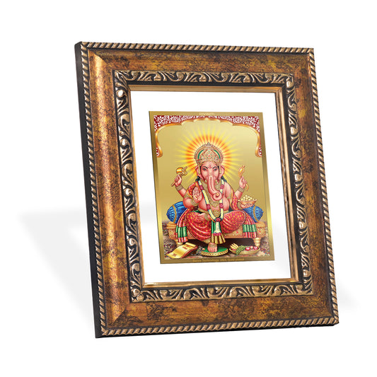 DIVINITI 24K Gold Plated Foil Ganesha Wall Photo Frame Religious Photo Frame Idol for Home & Office Decor Prayer Gifts Item DG 101 Size 1 (15.3x14.9 CM)