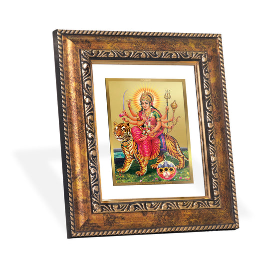 DIVINITI 24K Gold Plated Foil Durga Wall Photo Frame Religious Photo Frame Idol for Home & Office Decor Prayer, Gifts Items DG 101 Size 1 (15.3x14.9 CM)