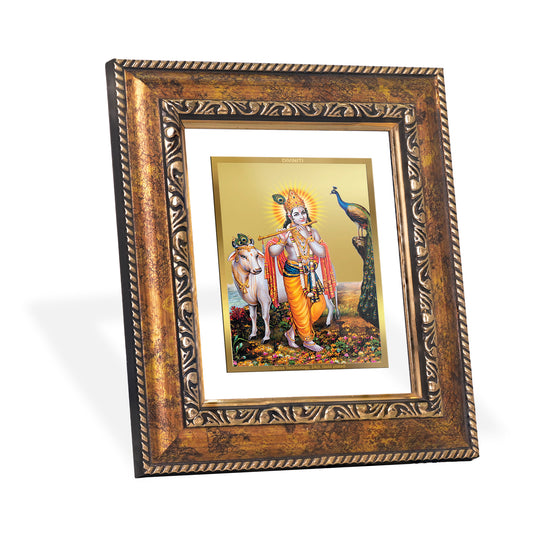 DIVINITI 24K Gold Plated Foil Lord Krishna Wall Photo Frame for Home Decor, Festival Gift DG 103 Size 1 (15.3x14.9 CM)