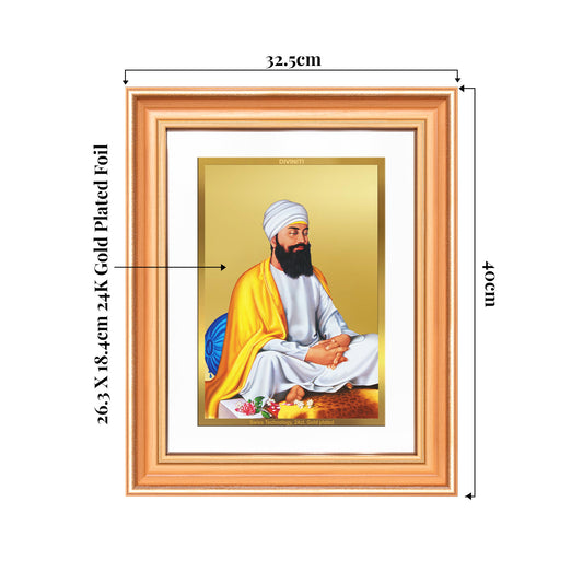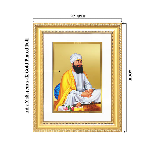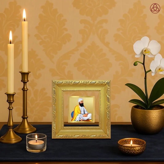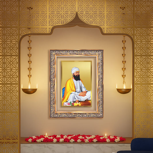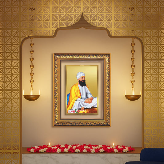 Guru Tegh Bahadar Sahib Ji | Divine Wall & Tabletop Photo Frame in 24K Gold Plated Foil