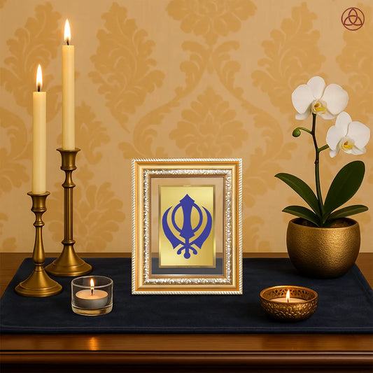 Khanda Sahib | The Emblem of Sikh Courage and Unity in 24K Gold Plated Foil Frame For Sikh Tradition