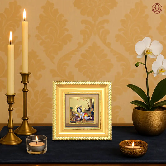 Laddu Gopal | Bal Krishna Tabletop Frame in 24K Gold Plated Foil